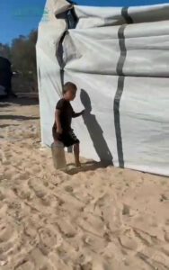 Die Menschen, denen wir bisher in Zusammenarbeit mit unseren Partnern von Cologne Cares in Nord-Gaza helfen konnten, wurden erneut aus ihren Unterkünften vertrieben – diesmal in den Süden, in die wüstenartige Gegend von Az-Zawayda.